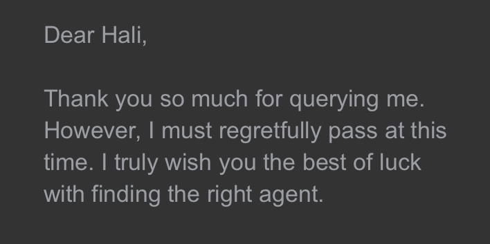 In this post I will be including a handful of screenshots from my own collection of query rejections as examples (with agent names cropped out of course) for what to expect in your query responses! Without further ado, let’s get into it.